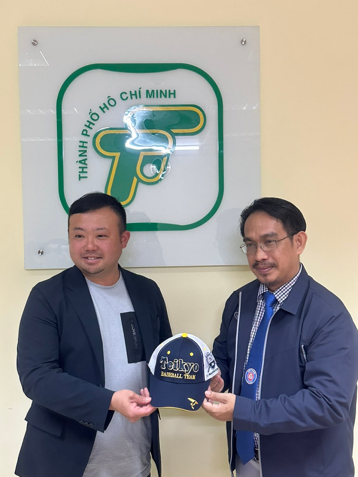 Ông Shuhei Asano – Chủ tịch Câu lạc bộ Bóng chày Đại học Teikyo (trái) mong muốn có cơ hội xây dựng các chương trình giao lưu bóng chày giữa sinh viên Đại học Teikyo và Câu lạc bộ Bóng chày Đại học Hoa Sen
