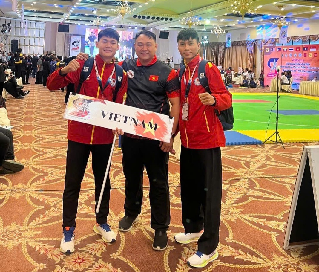Huấn luyện viên Trần Huỳnh Thanh Quốc và 2 võ sĩ Thành phố Hồ Chí Minh tham dự giải