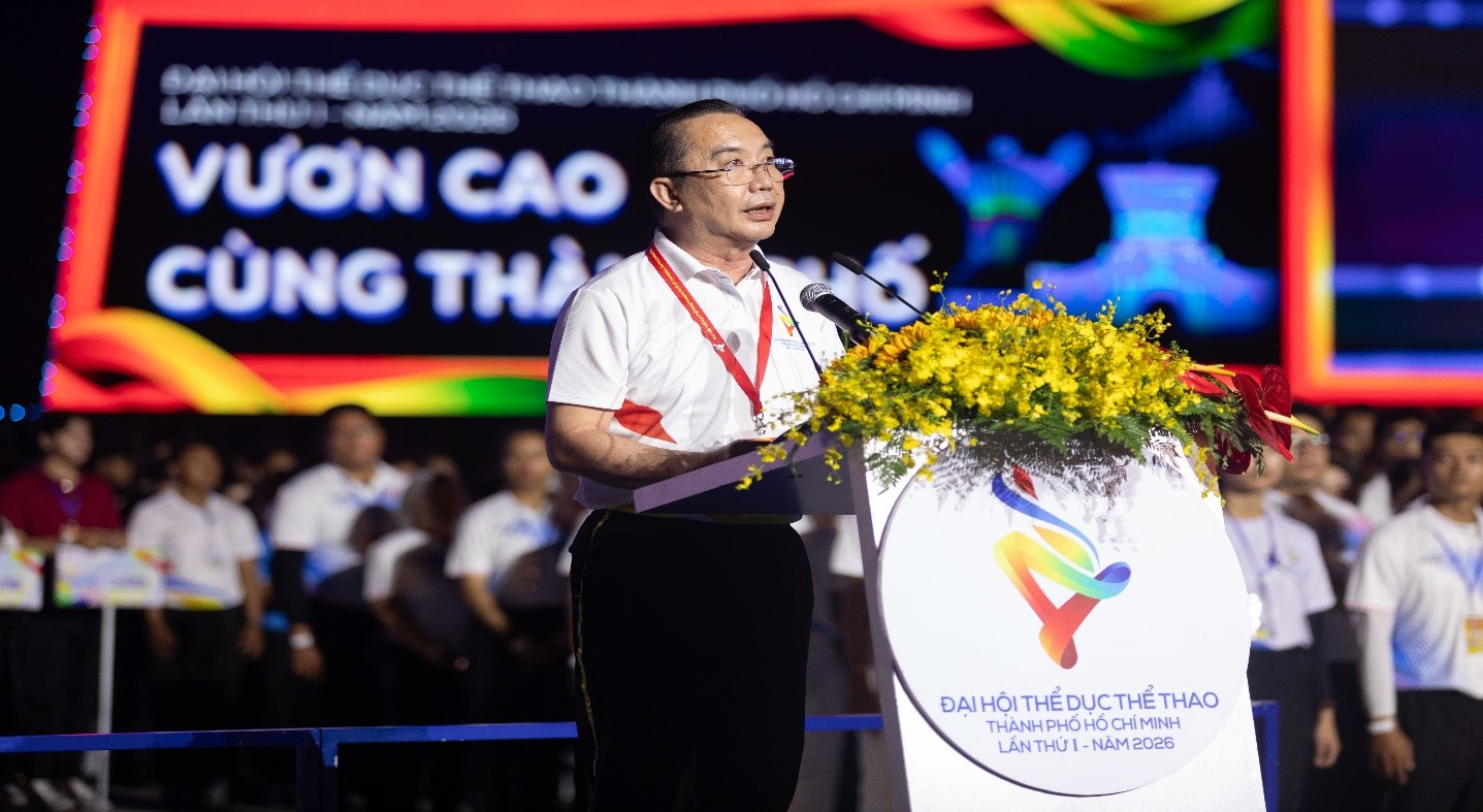 Tối ngày 19/4, tại Công viên Bờ sông Sài Gòn (phường An Khánh), lễ khai mạc Đại hội Thể dục thể thao Thành phố Hồ Chí Minh lần thứ 1 năm 2026 với chủ đề “Vươn cao cùng thành phố” đã diễn ra rất long trọng. Tham dự buổi lễ có sự hiện diện của các lãnh đạo: đồng chí Hoàng Đạo Cương, Thứ trưởng Bộ Văn hóa, Thể thao và Du lịch; đồng chí Nguyễn Hồng Minh, Phó Cục trưởng Cục Thể dục thể thao Việt Nsm; đồng chí Đặng Minh Thông, Phó Bí thư Thành ủy Thành phố Hồ Chí Minh; đồng chí Nguyễn Mạnh Cường, Ủy viên dự khuyết Ban chấp hành Trung ương Đảng, Phó Chủ tịch Ủy ban nhân dân Thành phố Hồ Chí Minh; đồng chí Trần Thế Thuận, Thành ủy viên, Giám đốc Sở Văn hóa và Thể thao Thành phố Hồ Chí Minh...