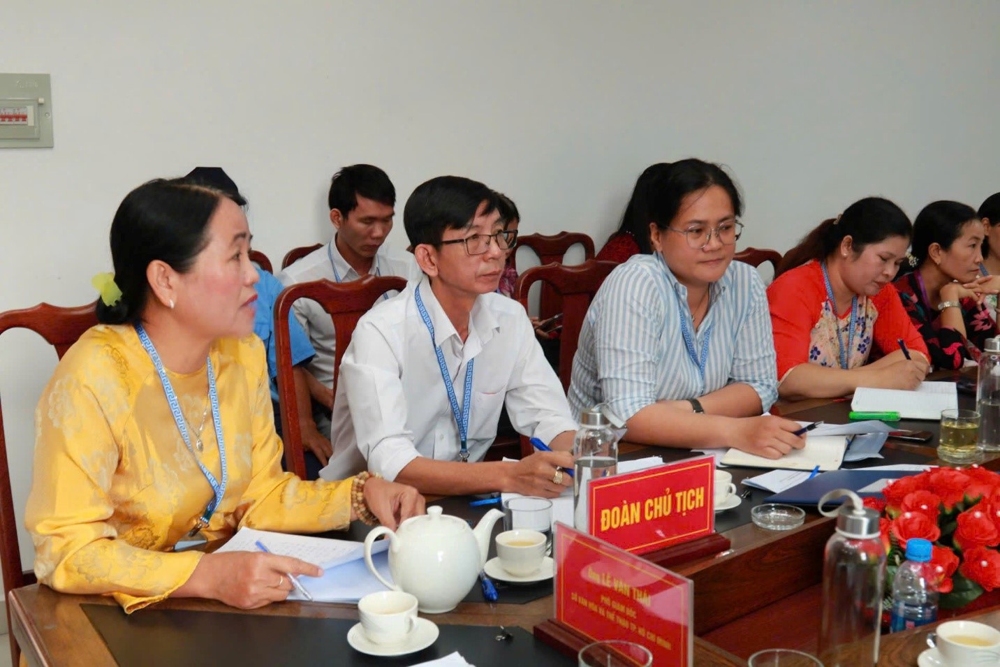 Ảnh 1: Bà Văn Thị Thuỳ Trang Giám đốc Bảo tàng Bình Dương (bên trái) lắng nghe ý kiến của viên chức và người lao động tại Hội nghị.