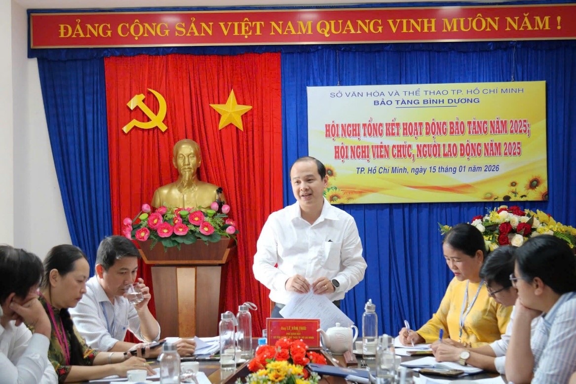 Phát biểu tại Hội nghị, ông Lê Văn Thái – Phó Giám đốc Sở Văn hóa và Thể thao Thành phố Hồ Chí Minh đánh giá cao tinh thần đoàn kết, trách nhiệm của tập thể viên chức, người lao động và những kết quả đạt được trong năm 2025 của Bảo tàng, đồng thời, cũng đưa ra những định hướng, chỉ đạo nhằm tiếp tục phát huy những thế mạnh đặc trưng của đơn vị.