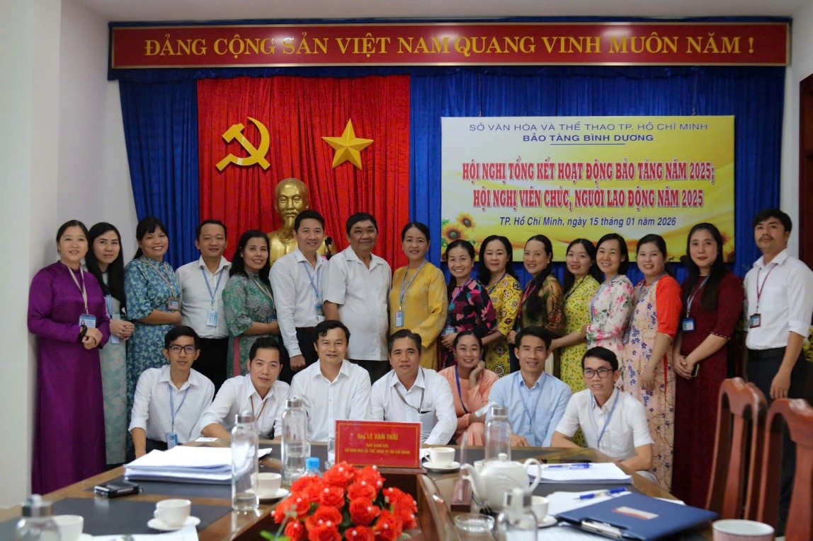 Sáng ngày 15/01/2026, Bảo tàng Bình Dương tổ chức Hội nghị Tổng kết hoạt động năm 2025 và Hội nghị Viên chức, người lao động năm 2025 nhằm tổng kết, đánh giá các hoạt động của đơn vị trong năm 2025 và đề ra phương hướng, nhiệm vụ hoạt động trong năm 2026.